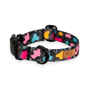 U psów średnio aktywnych i bardzo kontaktowych liczy się komfort i szybkie zakładanie, szczególnie gdy wychodzicie kilka razy dziennie. Ten wzór dobrze sprawdzi się jako obroża dla Jack Russell Terriera, Shih Tzu lub Cavalier King Charles Spaniela — wygodna w mieście, w parku i w podróży. Kolorowe kleksy dodają charakteru, ale czarna baza pozostaje uniwersalna i „nie gryzie się” z resztą akcesoriów.