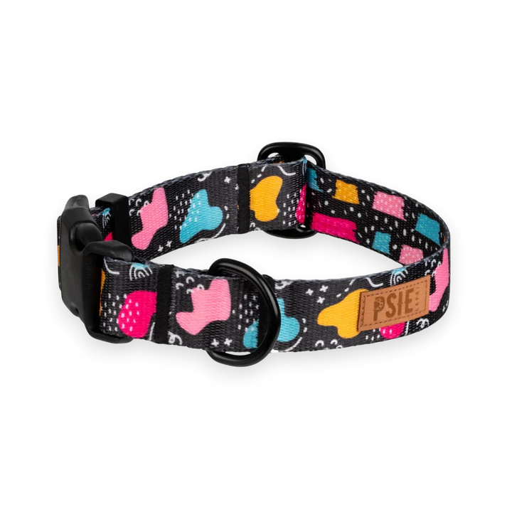 Obroża dla psa z klamrą regulowana Kolorowa Czarna w kleksy