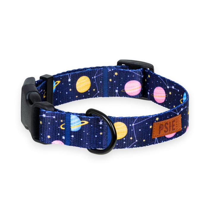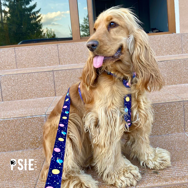 Obroża dla psa we wzory – granatowa w planety na co dzień
