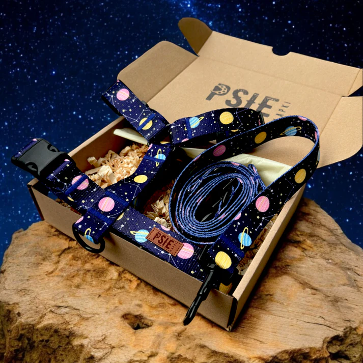 Jeśli chcesz spójny zestaw spacerowy, wybierz obroża i smycz dla psa w tym samym motywie planet. W sklepie Psiabudka.pl można skompletować pasujące akcesoria w tych samych wzorach, dzięki czemu cały komplet wygląda estetycznie i profesjonalnie. To wygodne rozwiązanie, gdy zależy Ci na dopasowanym designie bez szukania elementów „na sztuki”.
