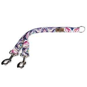 Smycz podwójna dla dwóch psów - łącznik - biała w kolorowe paski