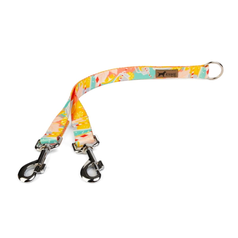 Smycz podwójna dla dwóch psów - łącznik - Żółta Lemoniada