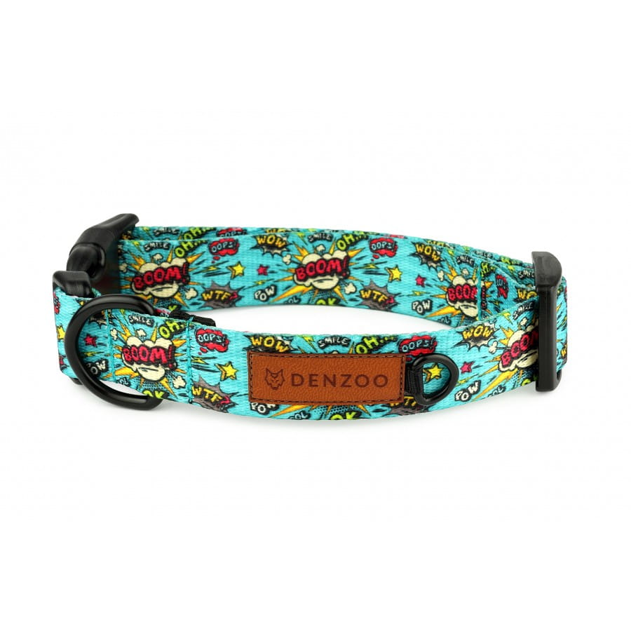 Obroża dla psa turkusowa Denzoo Boom Komiksowa