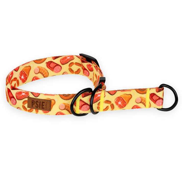 Pomarańczowa obroża półzaciskowa w szynkę to połączenie wyrazistego, humorystycznego printu z funkcjonalnością na co dzień. Sprawdzi się, gdy chcesz postawić na wygodę psa, a jednocześnie mieć pewniejsze prowadzenie na smyczy – bez ciężkich klamer i bez ciągłego poprawiania obroży.