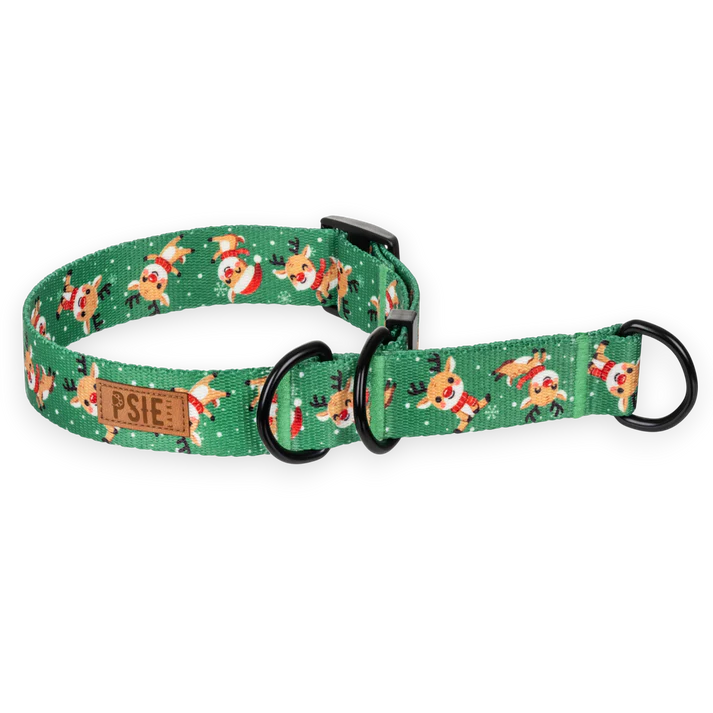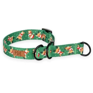 Obroża półzaciskowa dla psa polska – świąteczna zieleń w renifery