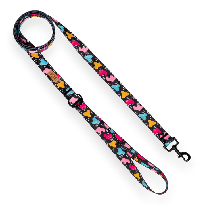 Smycz dla psa 1,6–10 m - Czarna w kolorowe kleksy – jedna smycz na miasto i teren