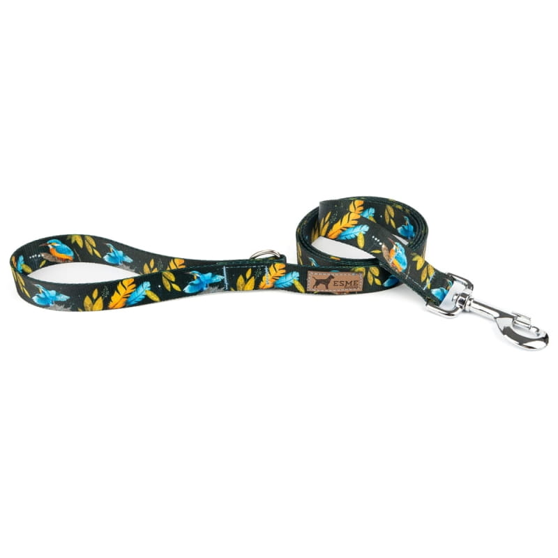 Nie każdy lubi krzykliwe wzory – ten jest subtelny, spokojny i elegancki. Czarne tło z niebieskimi i żółtymi obrazami pasuje do każdej rasy i każdego umaszczenia, a trwałe wykonanie zapewnia, że smycz posłuży przez lata.