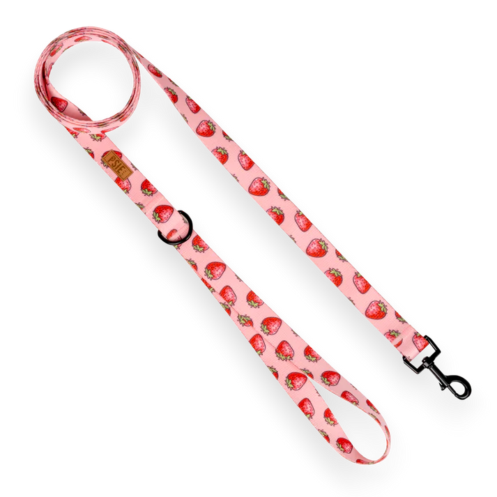 Smycz miejska dla psa Czerwona Różowa w Truskawki