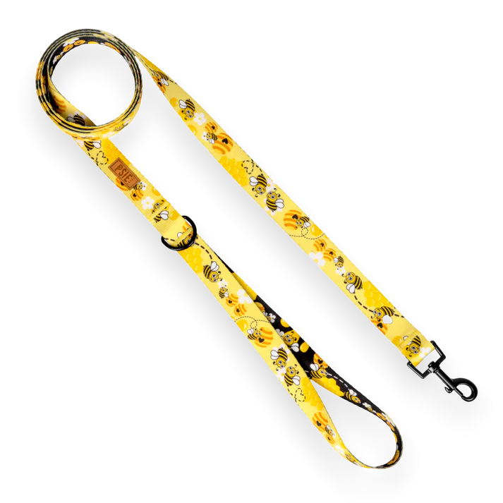 Smycz dla psa 1,6–10 m żółta w pszczoły – jedna smycz na miasto i teren