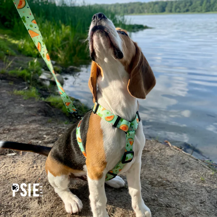 Soczysty, melonowy motyw na zielonym tle wyróżnia się, ale nadal pasuje do miejskich zestawów spacerowych. To dobra opcja na sezon wiosna–lato, kiedy chcesz postawić na świeży, radosny wzór. Jednocześnie obroża pozostaje uniwersalna: sprawdzi się na krótkich wyjściach i dłuższych trasach.