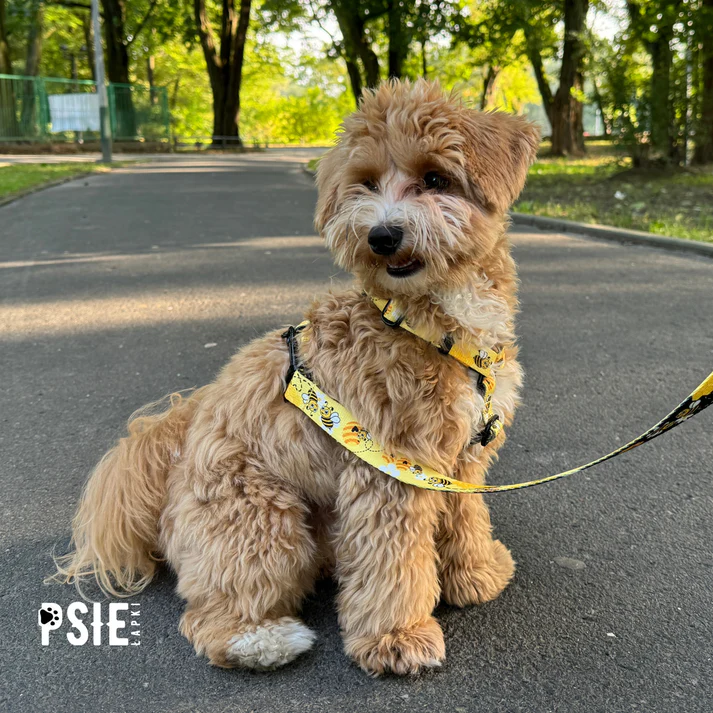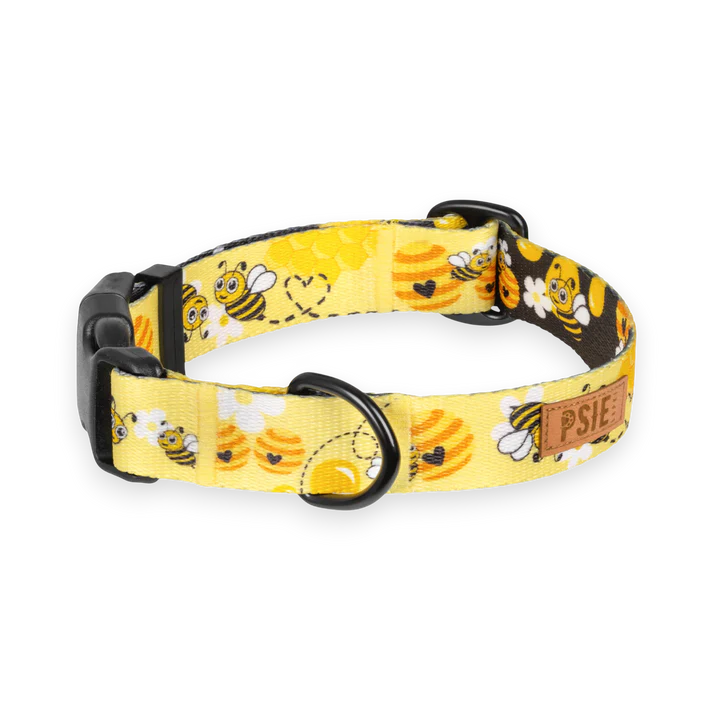 Obroża dla psa z klamrą regulowana Żółta w Pszczoły