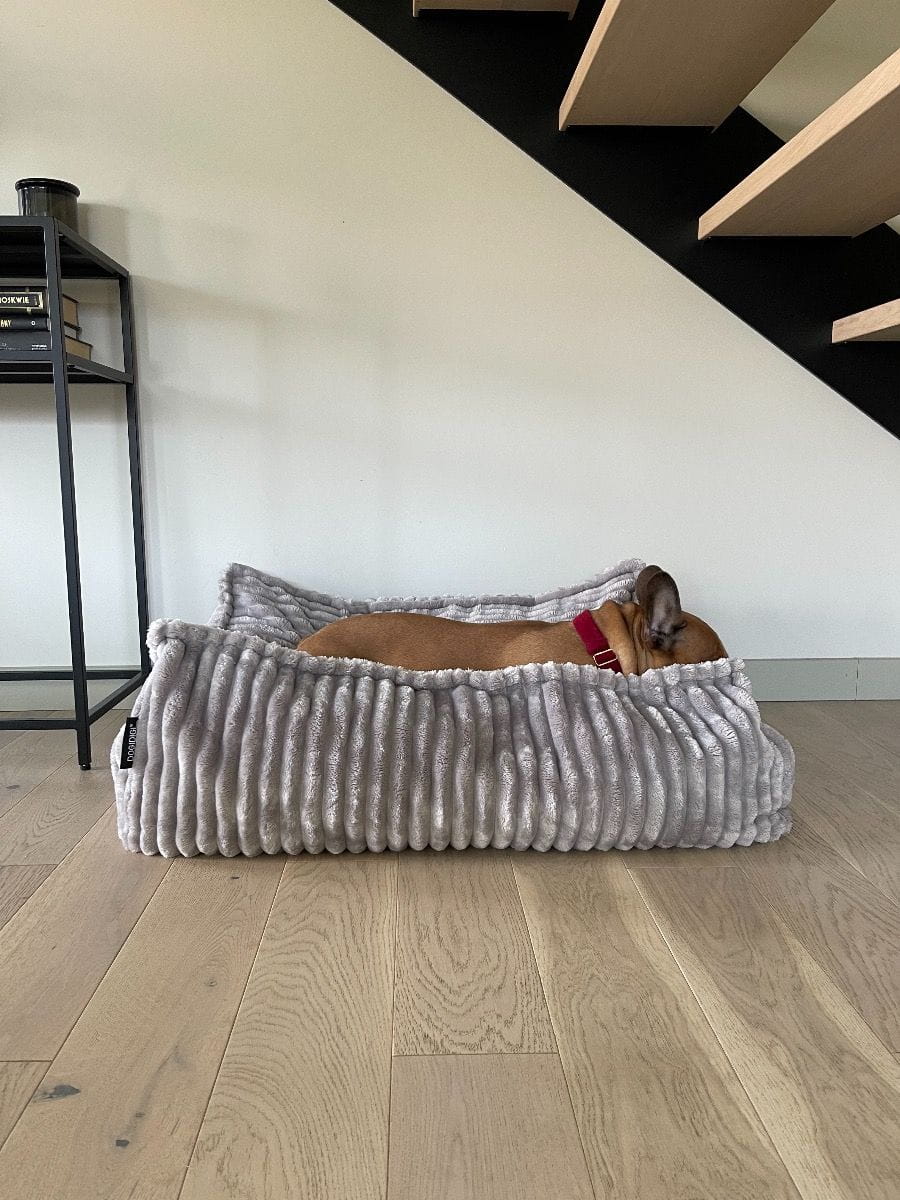 Ciemno szare pluszowe i miękkie legowisko dla psa PLUSH – najwygodniejsze i hipoalergiczne łóżeczko dla Twojego pupila