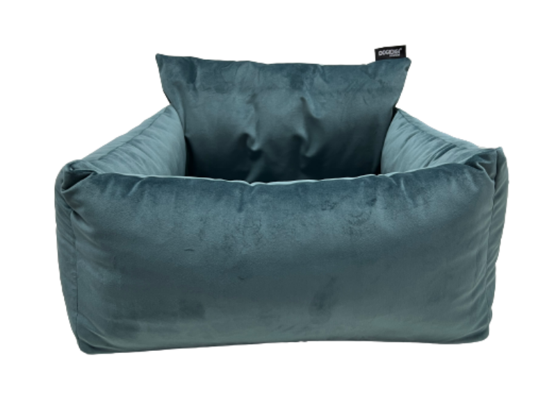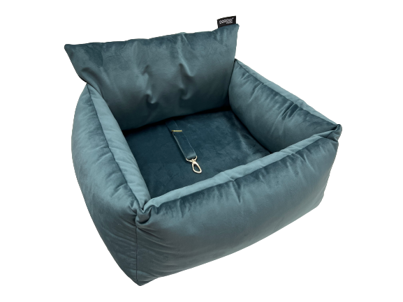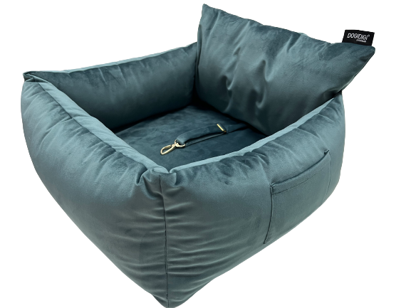 Welurowy Turkusowy Fotelik do auta dla Psa z pasem bezpieczeństwa Cloud - Dogidigi
