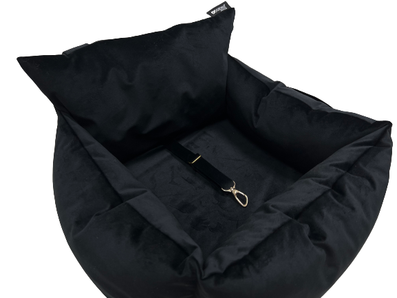 Welurowy Czarny z pasem bezpieczeństwa Fotelik do auta dla Psa Cloud - Dogidigi