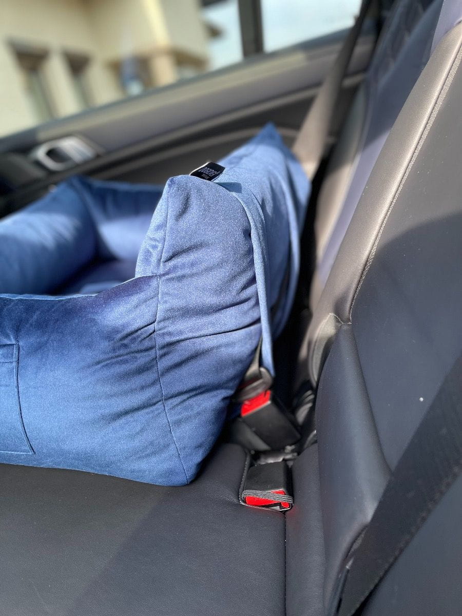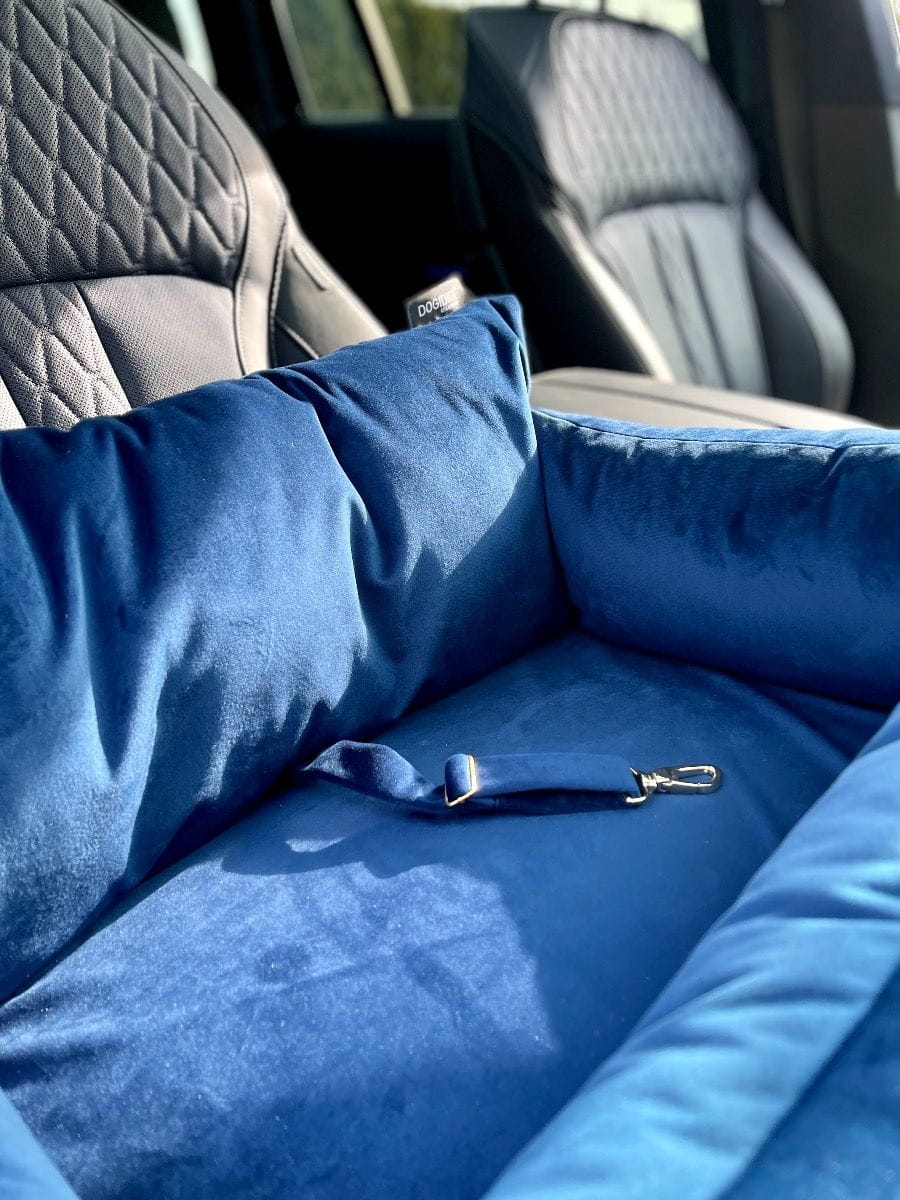 Welurowe podróżne siedzisko dla Psa z pasem bezpieczeństwa niebieskie Cloud - Dogidigi