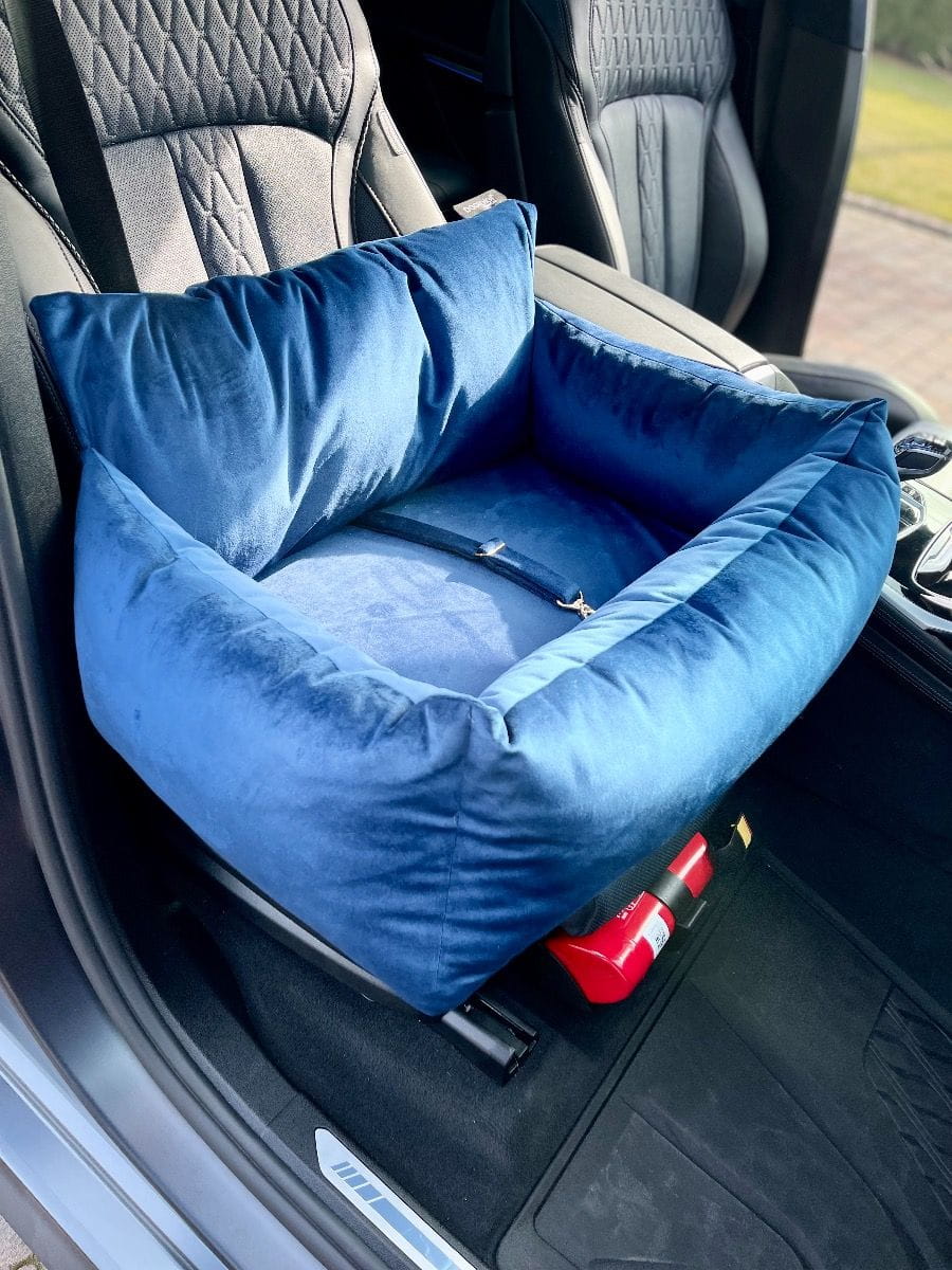 Niebieski fotelik dla psa - klasyczny kolor pełen harmonii