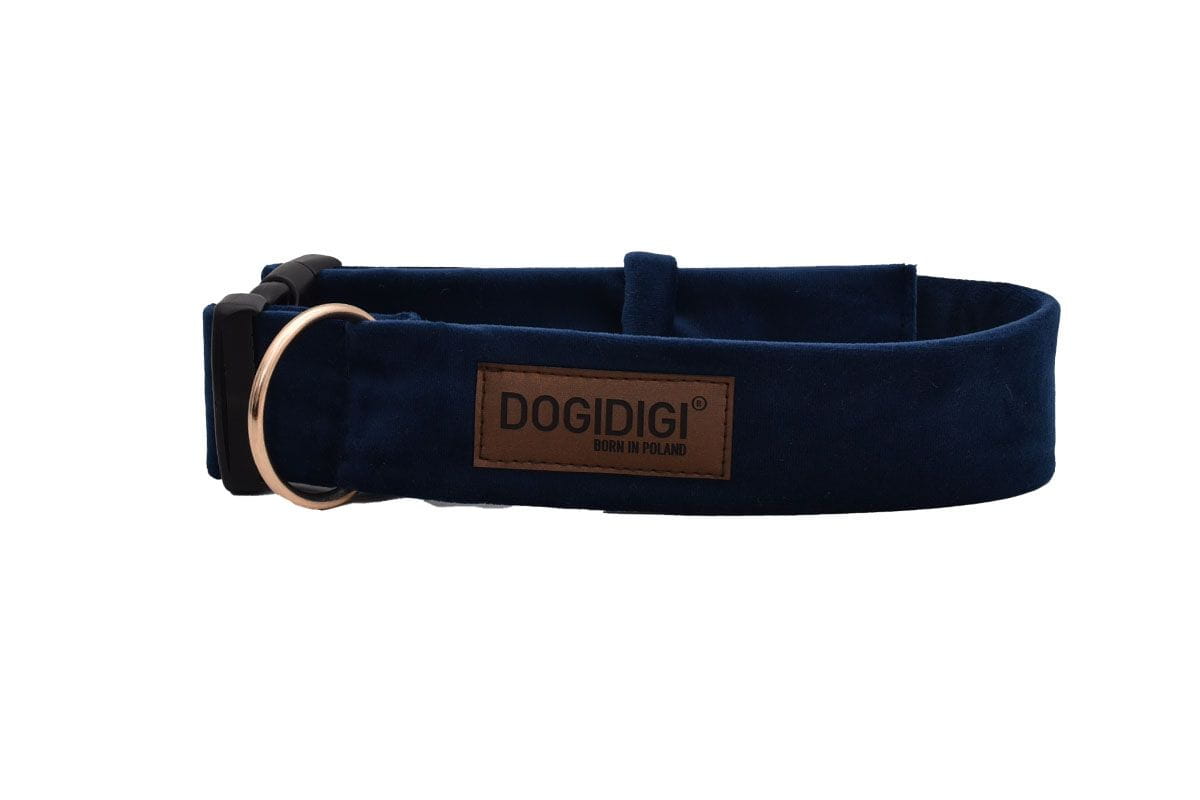 Granatowa szeroka kolorowa obroża spacerowa welurowa dla dużego psa szerokość 4cm rozmiar S M L