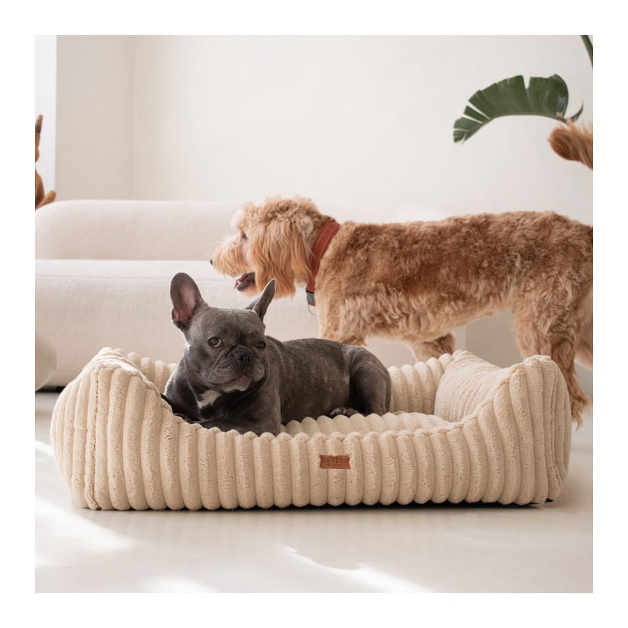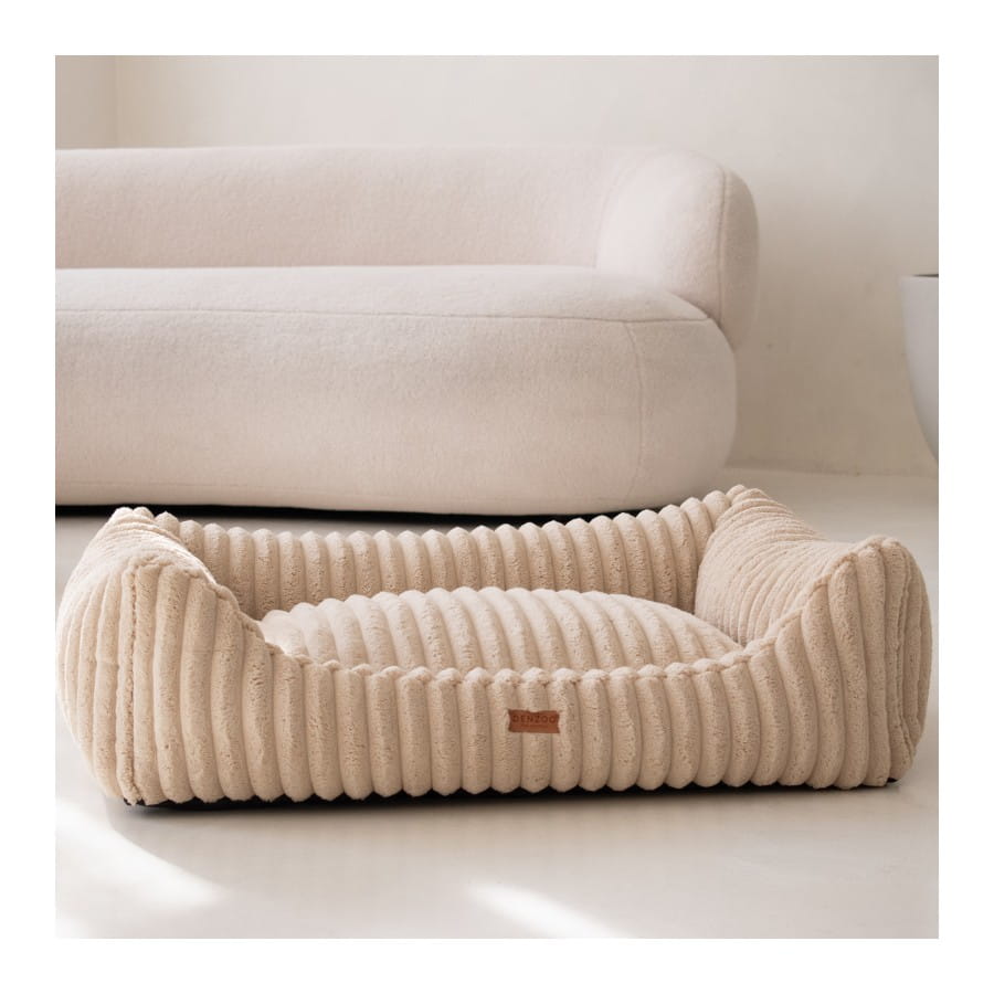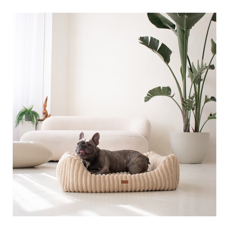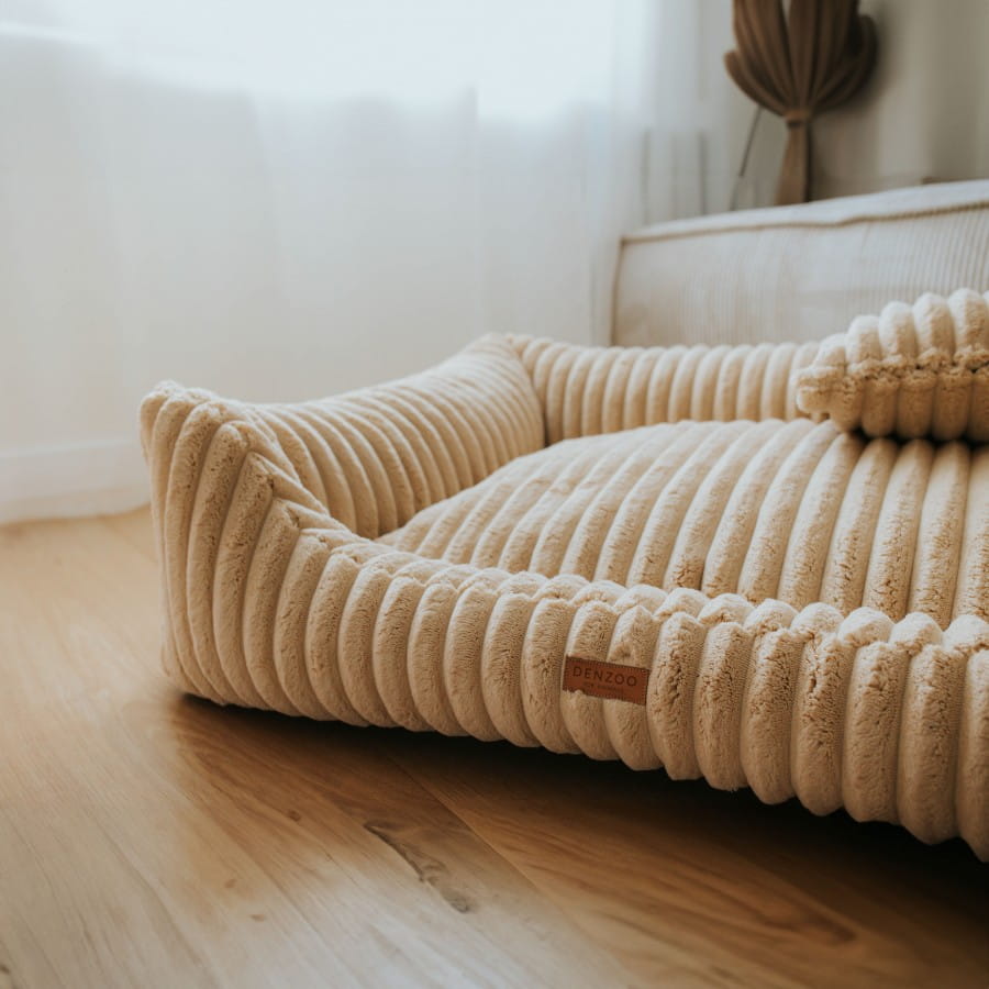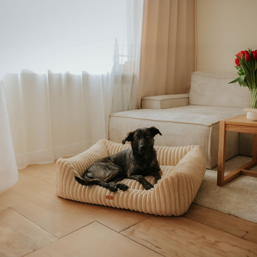 Beżowe legowisko dla psa – ciepłe i uniwersalne do wnętrz