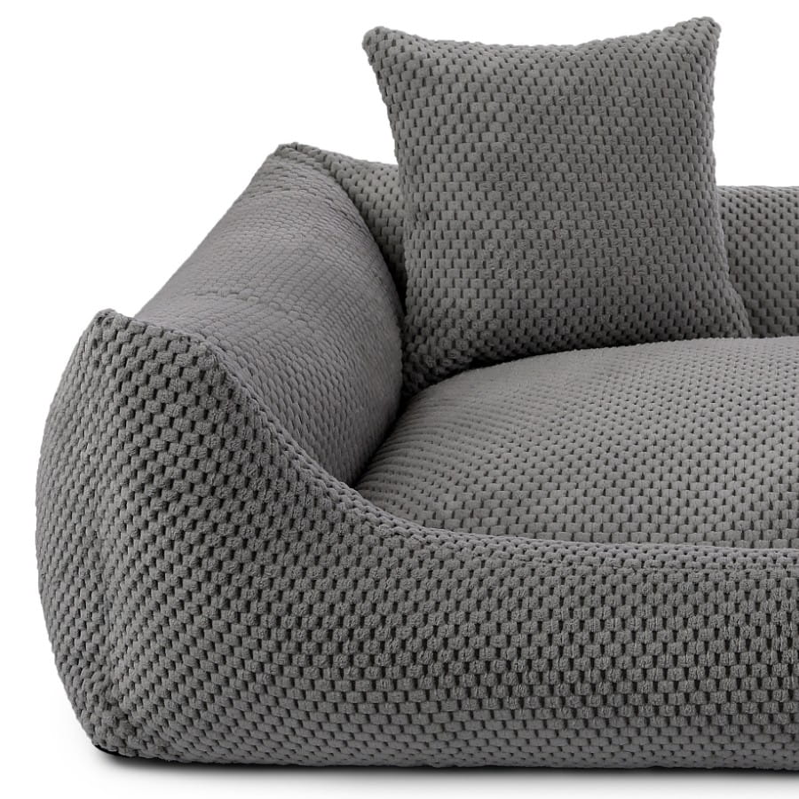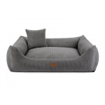 PRATO DARK GREY wykonano z wysokiej jakości materiałów tapicerskich, odpornych na zadrapania i odkształcenia. Tkanina ograniczająca wchłanianie cieczy ułatwia utrzymanie porządku, gdy po spacerze pojawią się mokre łapy lub drobne zabrudzenia.