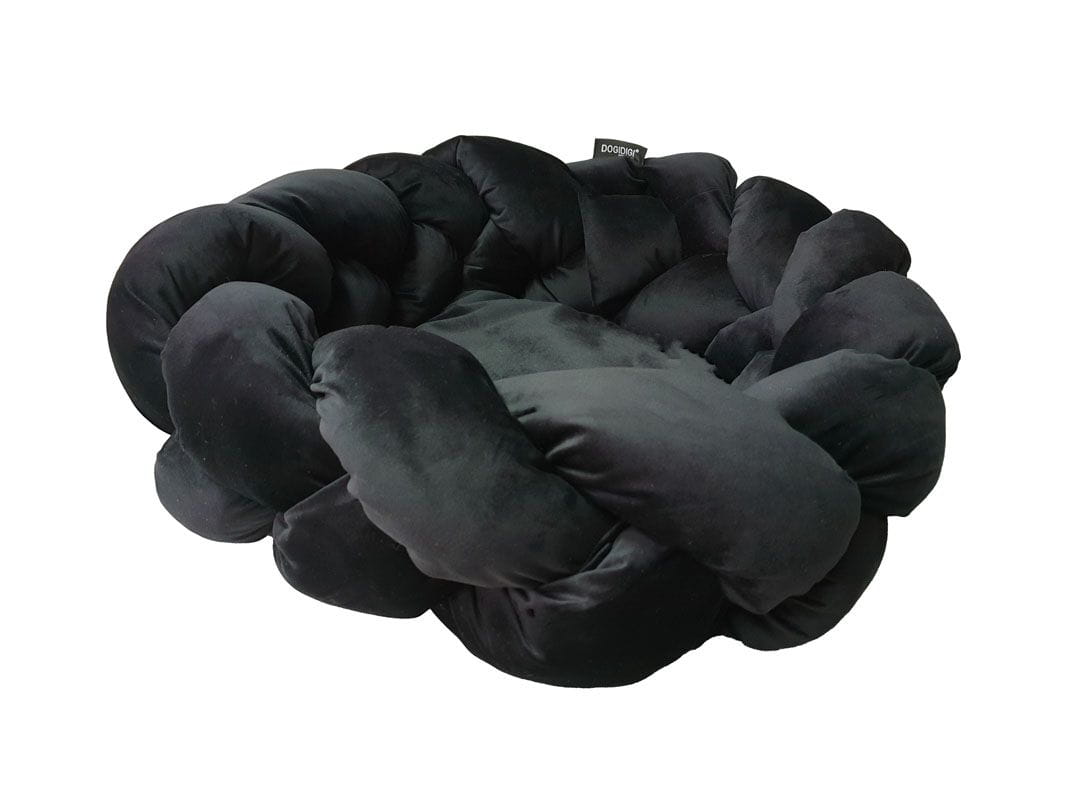 Czarne ręczenie szyte legowisko w kształcie koła dla Psa Plecione+ z Pianką Memory – legowisko dla małego i dużego psa - różne rozmiary