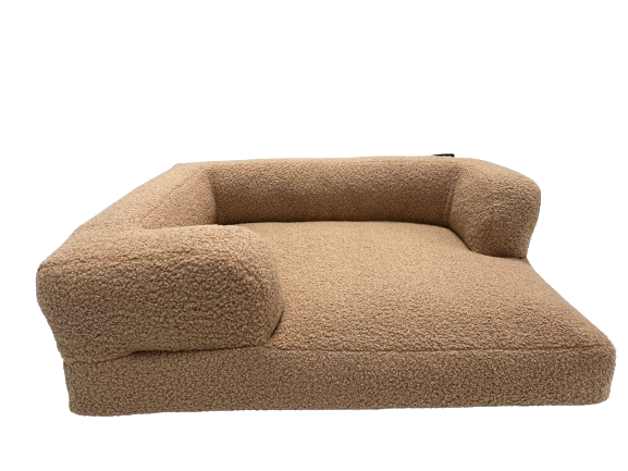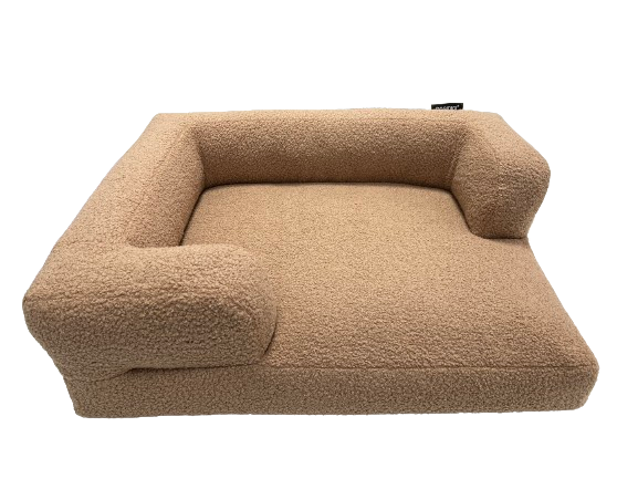 Brązowe, beżowe legowisko dla psa SNUG - FUR – przytulne łóżeczko ortopedyczne dla psów z dysplazją