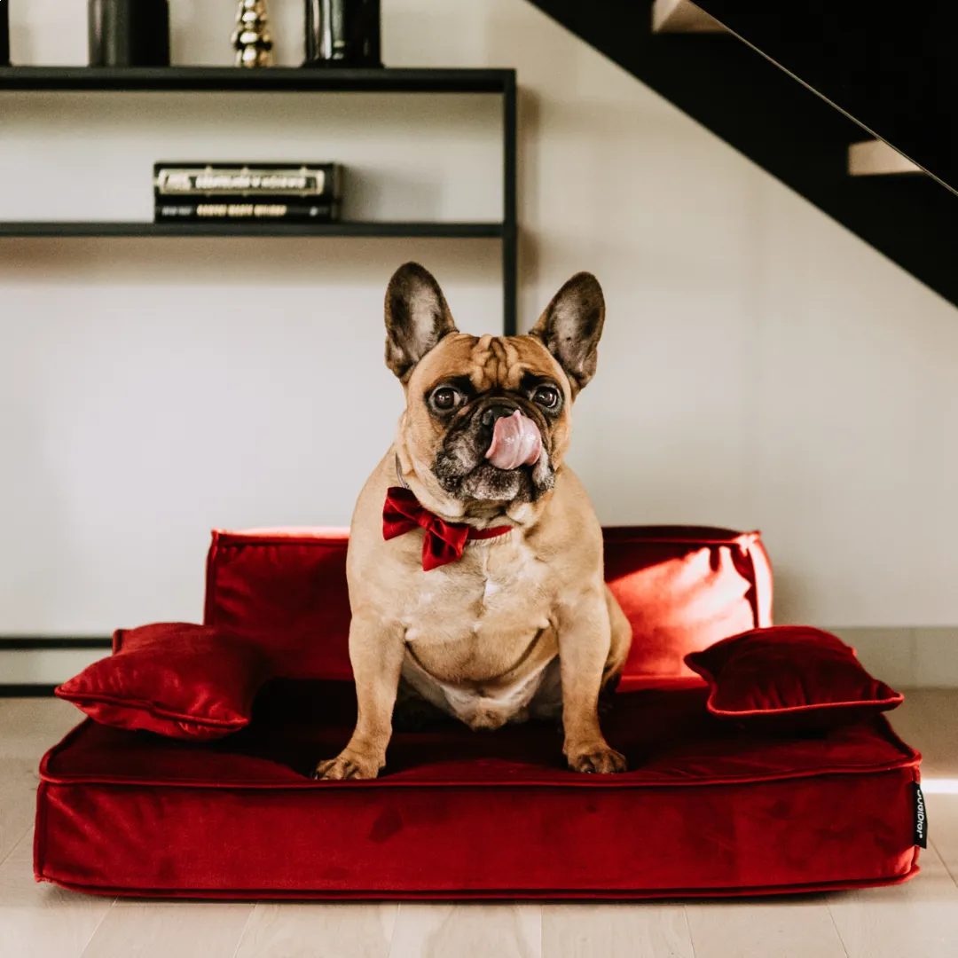 - Wsparcie dla głowy: Większość psów uwielbia układać głowę na podwyższeniu, by móc obserwować otoczenie z pozycji leżącej. Miękkie wałki boczne kanapy WERSAL pełnią funkcję ergonomicznej poduszki, odciążając odcinek szyjny kręgosłupa.