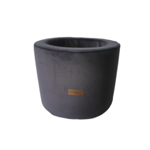 Choć wygląda surowo i nowocześnie, w dotyku jest niezwykle przyjemny. Użyliśmy weluru typu "soft touch". To ważne, jeśli szukasz bezpiecznych akcesoriów do domu z psem. Materiał nie posiada ostrych krawędzi, o które zwierzak mógłby zahaczyć okiem lub dziąsłem podczas szalonej eksploracji zawartości kosza.