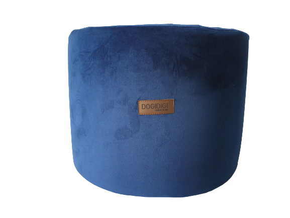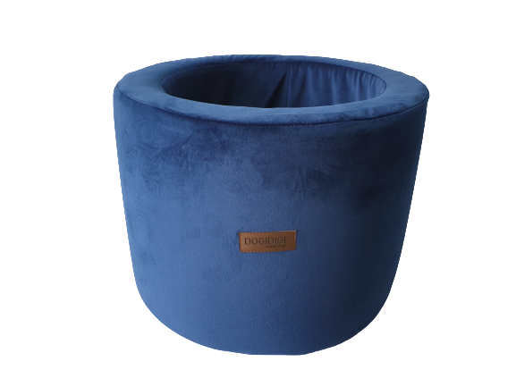 Wybraliśmy odcień granatu (navy blue) nieprzypadkowo. To jeden z najbardziej uniwersalnych kolorów, który pasuje zarówno do jasnych skandynawskich wnętrz, jak i do ciemniejszych, loftowych przestrzeni. Granat jest elegancki, nie pokazuje zabrudzeń tak szybko jak jasne odcienie, a przy tym dodaje wnętrzu głębi i szyku. Skórzana naszywka z logo Psia Budka to subtelny znak jakości premium.
