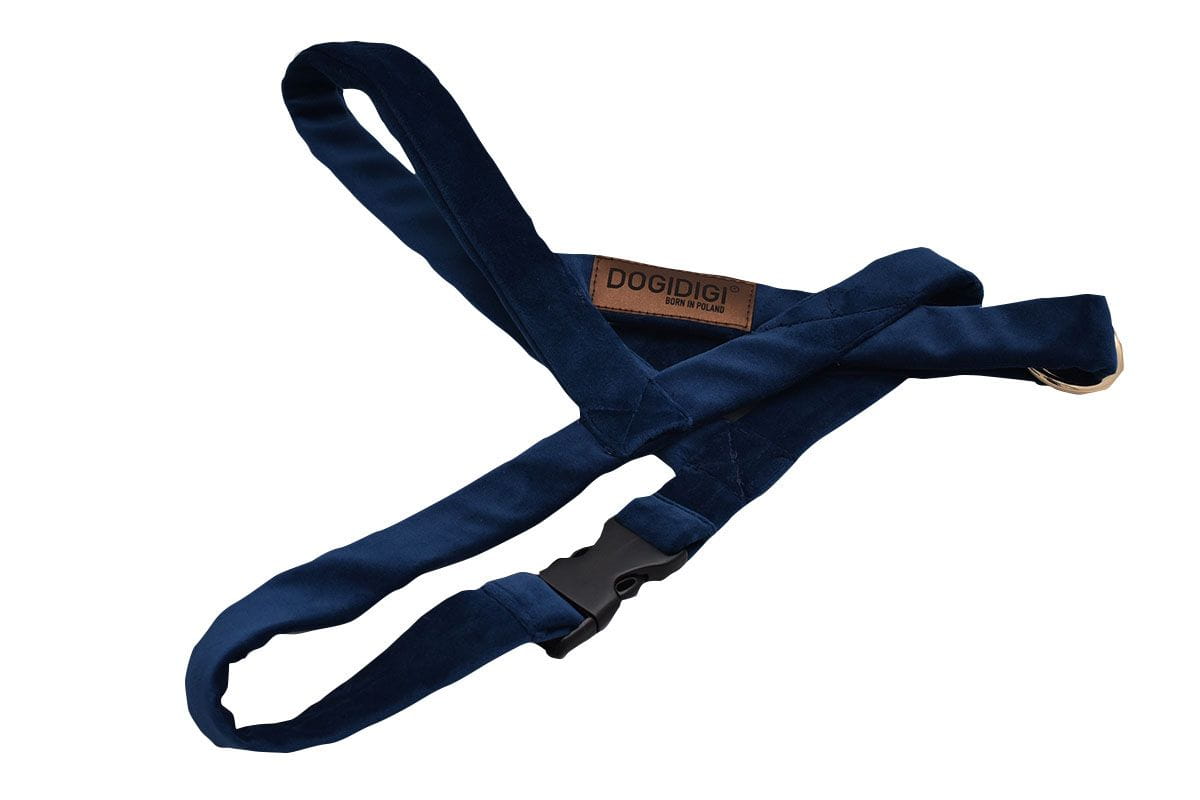 Szelki norweskie premium do spacerów Velvet Granatowe – elegancja i wygoda w każdym detalu