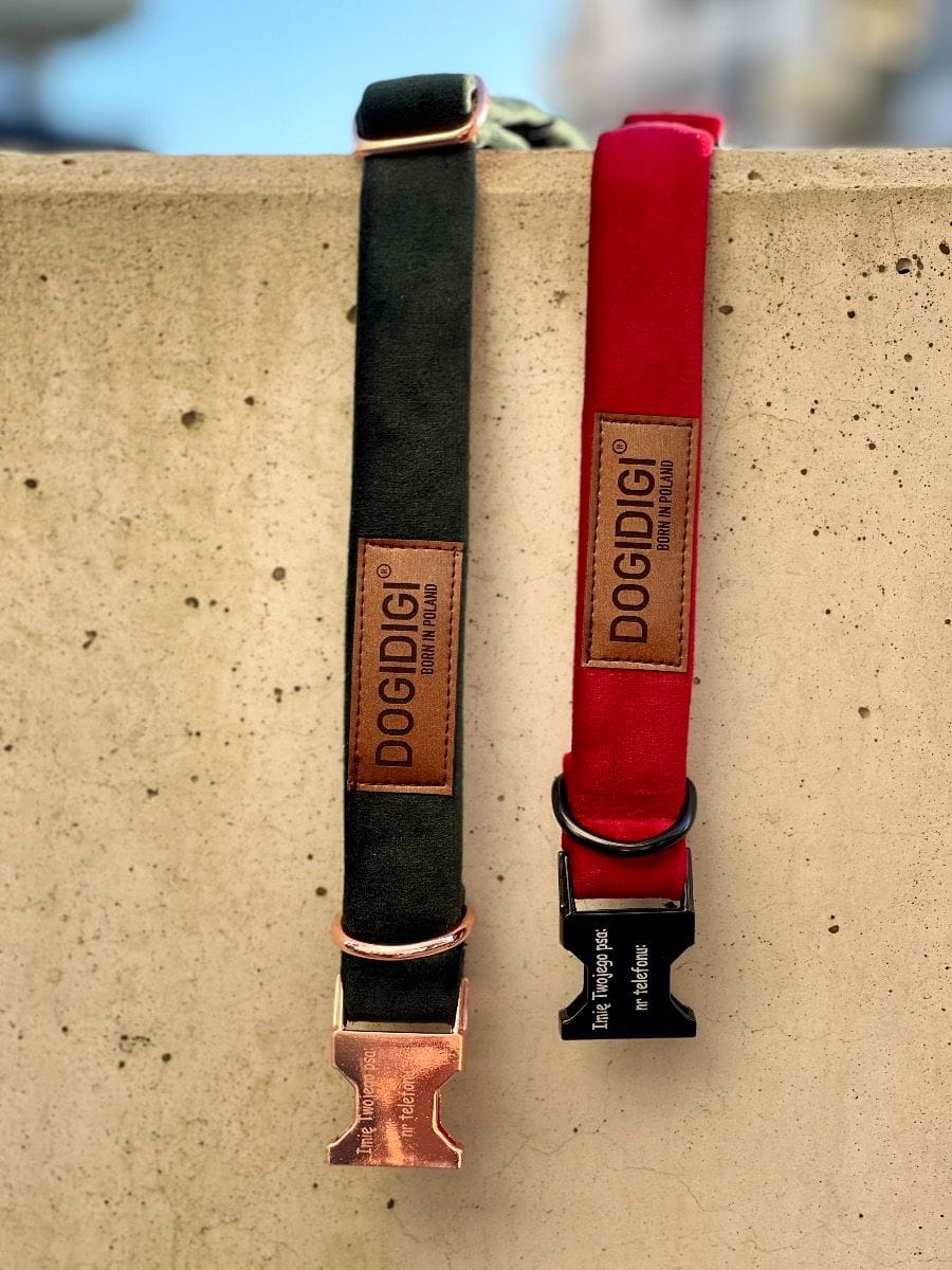 Zewnętrzna warstwa obroży została wykonana z jedwabistego weluru Velvet. Jest to materiał niezwykle przyjemny w dotyku, który pięknie pracuję ze światłem, nadając obroży ekskluzywny wygląd. Ale niech Cię nie zwiedzie jego delikatność – wewnątrz kryje się serce z solidnego wkładu parcianego. Taka konstrukcja gwarantuje, że obroża jest odporna na rozerwanie i posłuży Wam przez długi czas.