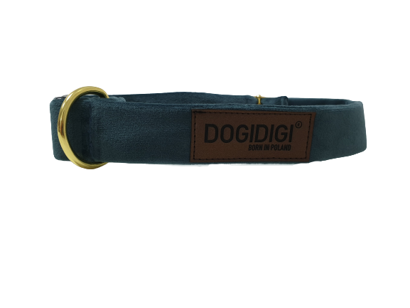 Welurowa faktura materiału sprawia, że turkus nie jest płaski – "żyje" w świetle, mieniąc się odcieniami od błękitu po morską zieleń. To idealna obroża na lato, ale równie pięknie ożywi szare, jesienne spacery, dodając im koloru.