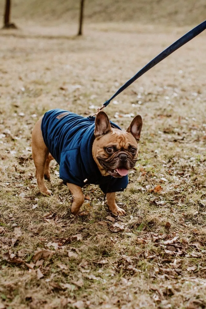 Ciepła niebieska kurtka zimowa dla psa - ubranie zimowe dla jamnika i nie tylko