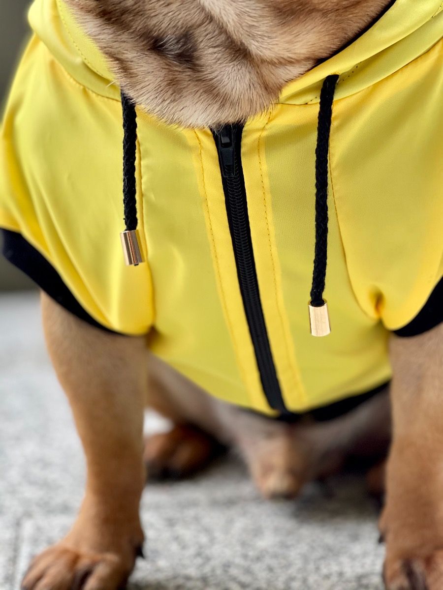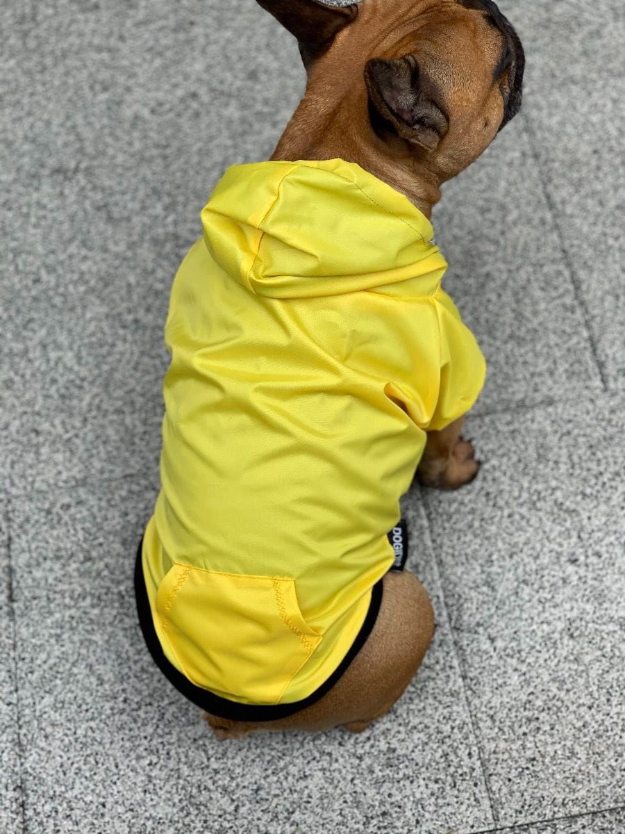 Żółta Kurtka Przeciwdeszczowa dla Psa – Energia, Widoczność i Ochrona